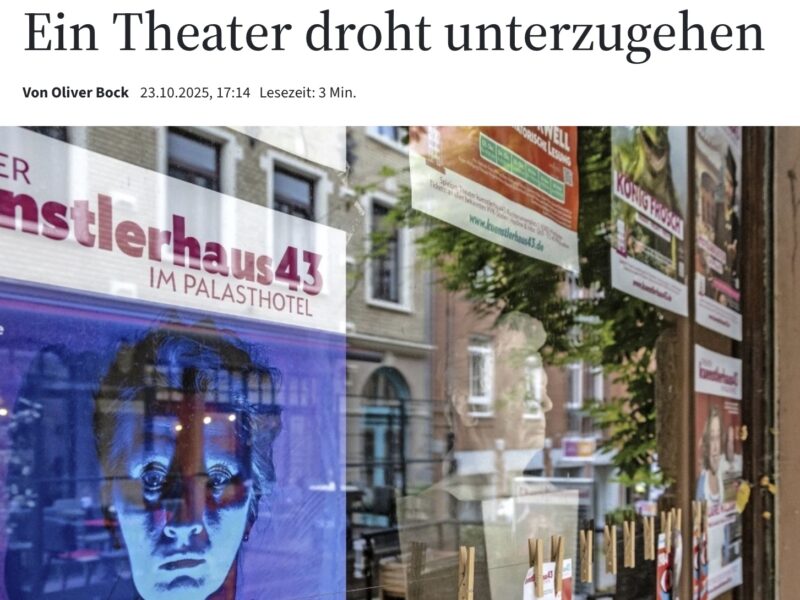 Robert Maus schreibt am 13. Oktober 2025 in der FAZ zum Thema Umzug des Theater kuenstlerhaus43.