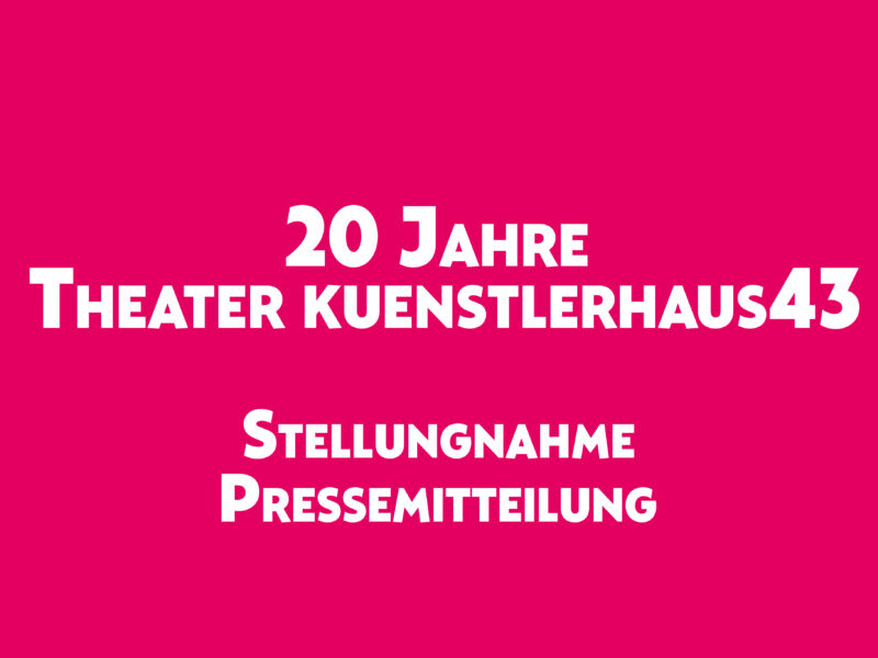 Der 21. Oktober war ein schwarzer Tag für das Theater kuenstlerhaus43. „Das kuenstlerhaus43 ist ganz real im hier und jetzt und seine Zukunft ist nur von einem Beschluss abhängig. Während in Fantasieprojekte und Wolkenschieberein hohe Planungskosten investiert werden, tut sich hier exemplarisch die Frage auf, inwiefern sich Kulturakteure eigentlich auf die Zusagen der Stadt verlassen können.“ Lesen Sie hier die aktuelle Pressemitteilung des Kulturbeirats.